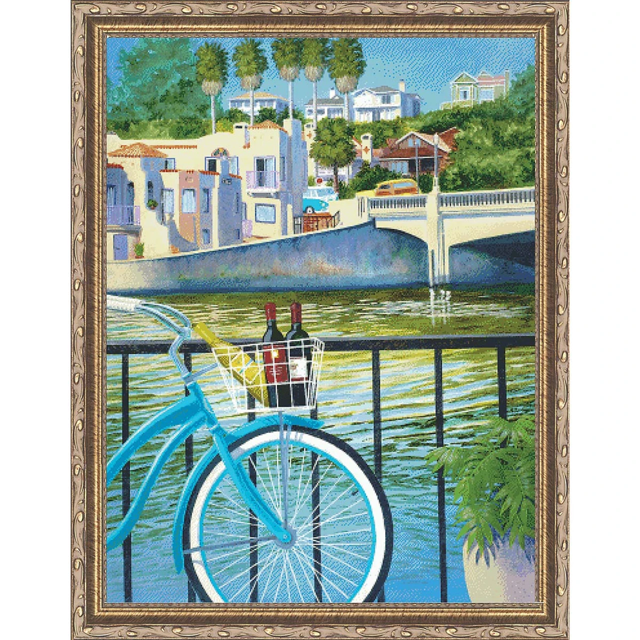 Relax and raise a toast to sunny days spent by the water. Counted cross-stitch design is approximately 13 × 18″ (33 x 46cm) when stitched on white