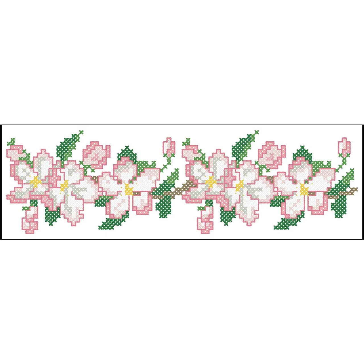 These spring cross-stitch pillowcases feature an array of cherry blossoms with white and pink petals surrounded by green leaves.
