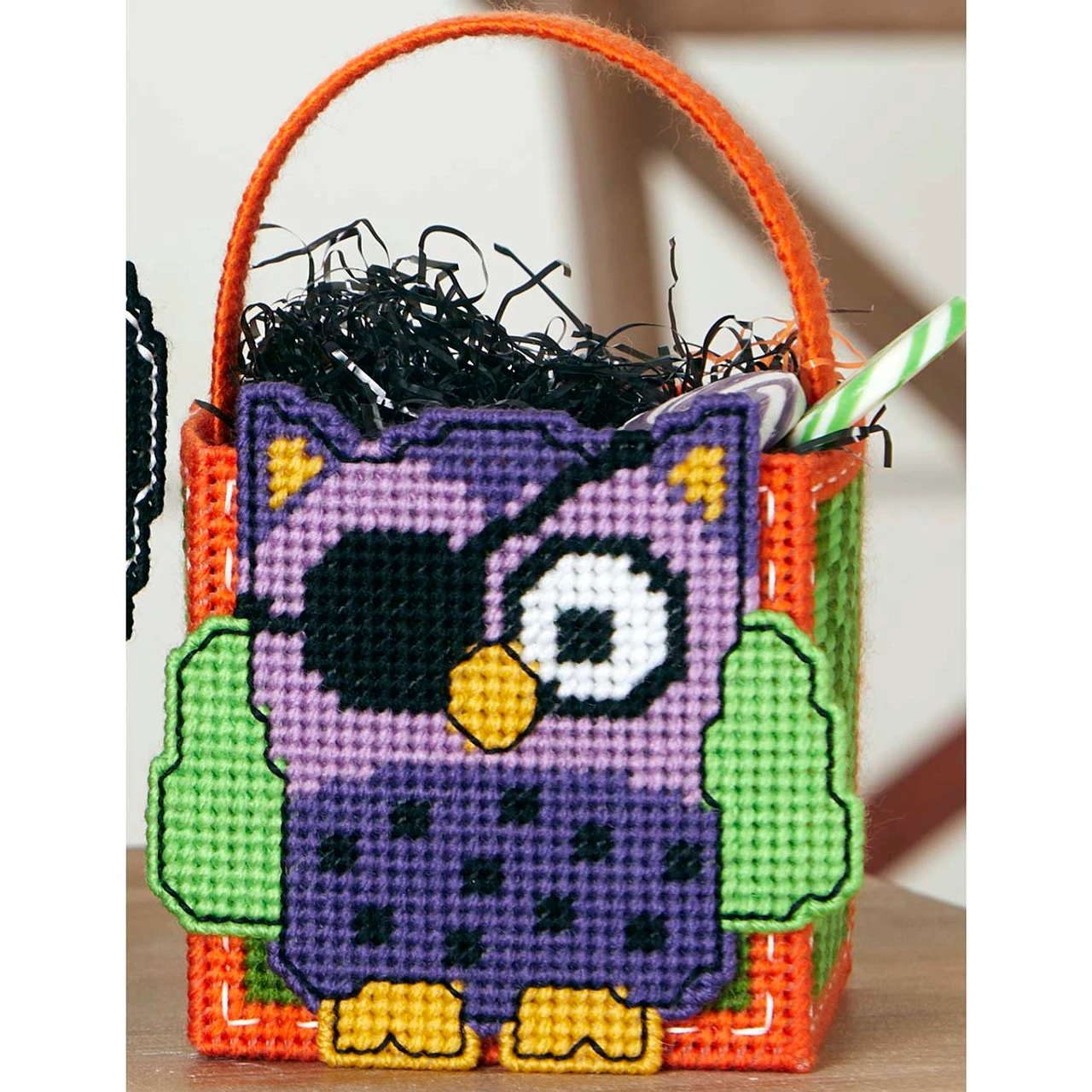 Herrschners Halloween Owl Candy Basket Plastic Canvas Kit