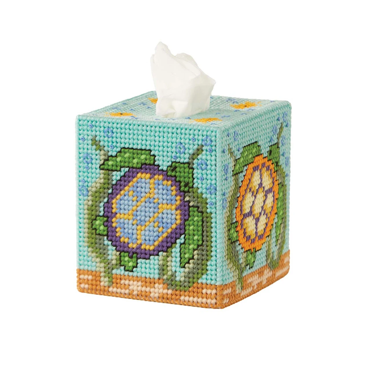 • This tissue box cover measures 5 x 5½ x 5″ (12.7 x 14 x 12.7cm).