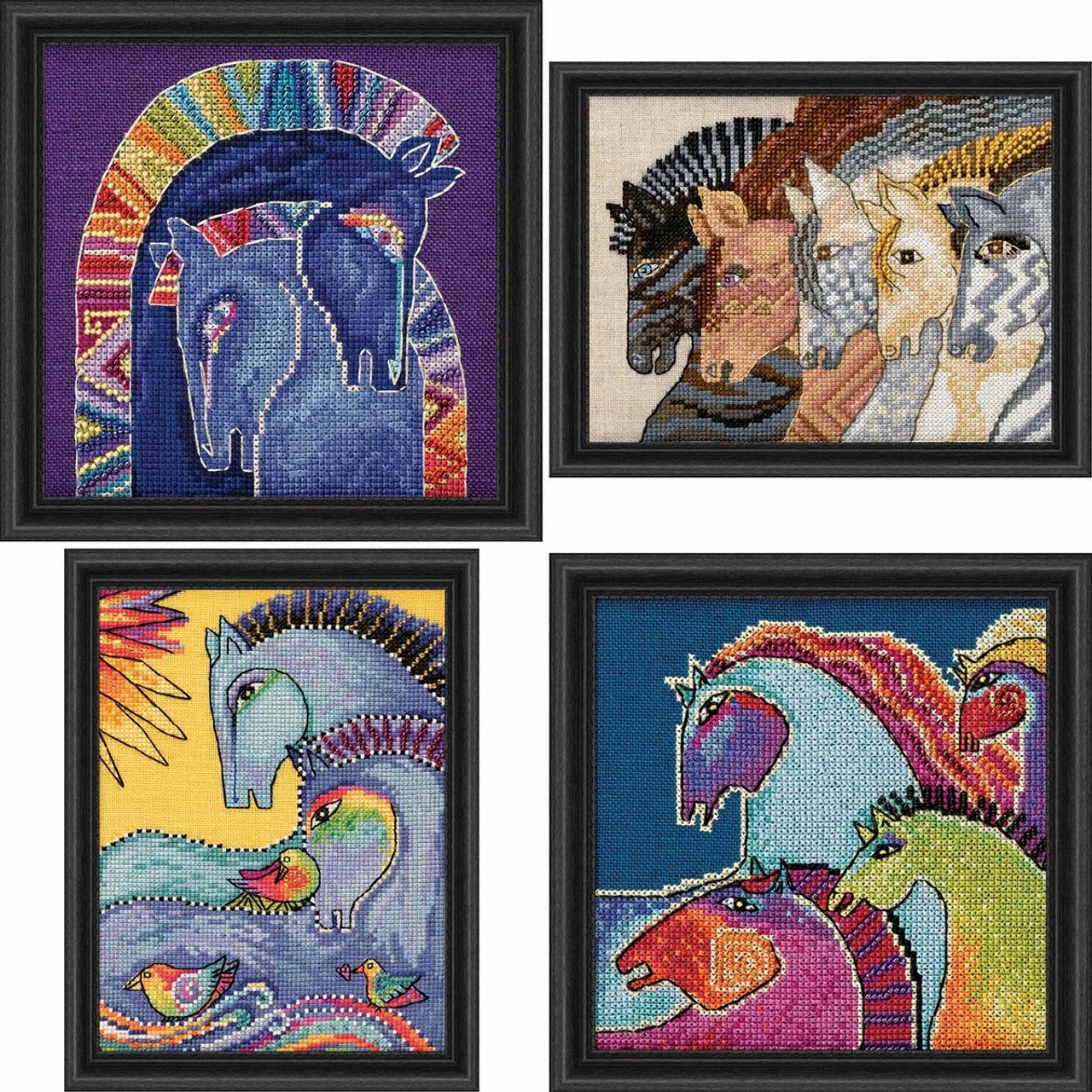 These funky counted cross-stitch horses bring a touch of whimsy to your wall art. From a striking portrait of neutral-toned horses with bold geometric patterns to playful designs featuring vibrant horses with colorful manes, these designs are embellished with glass beads for a hint of sparkle. The designs are stitched on colored 14-ct. aida cloth. The easy-to-see squares of aida cloth make it a great fabric choice for both beginning stitchers and those with more experience. Each complete counted cross-stitch kit includes colored 14-ct. aida cloth, DMC cotton floss, Mill Hill glass beads, needle, and instructions. Frames are not included. Sizes vary. Made in U.S.A.